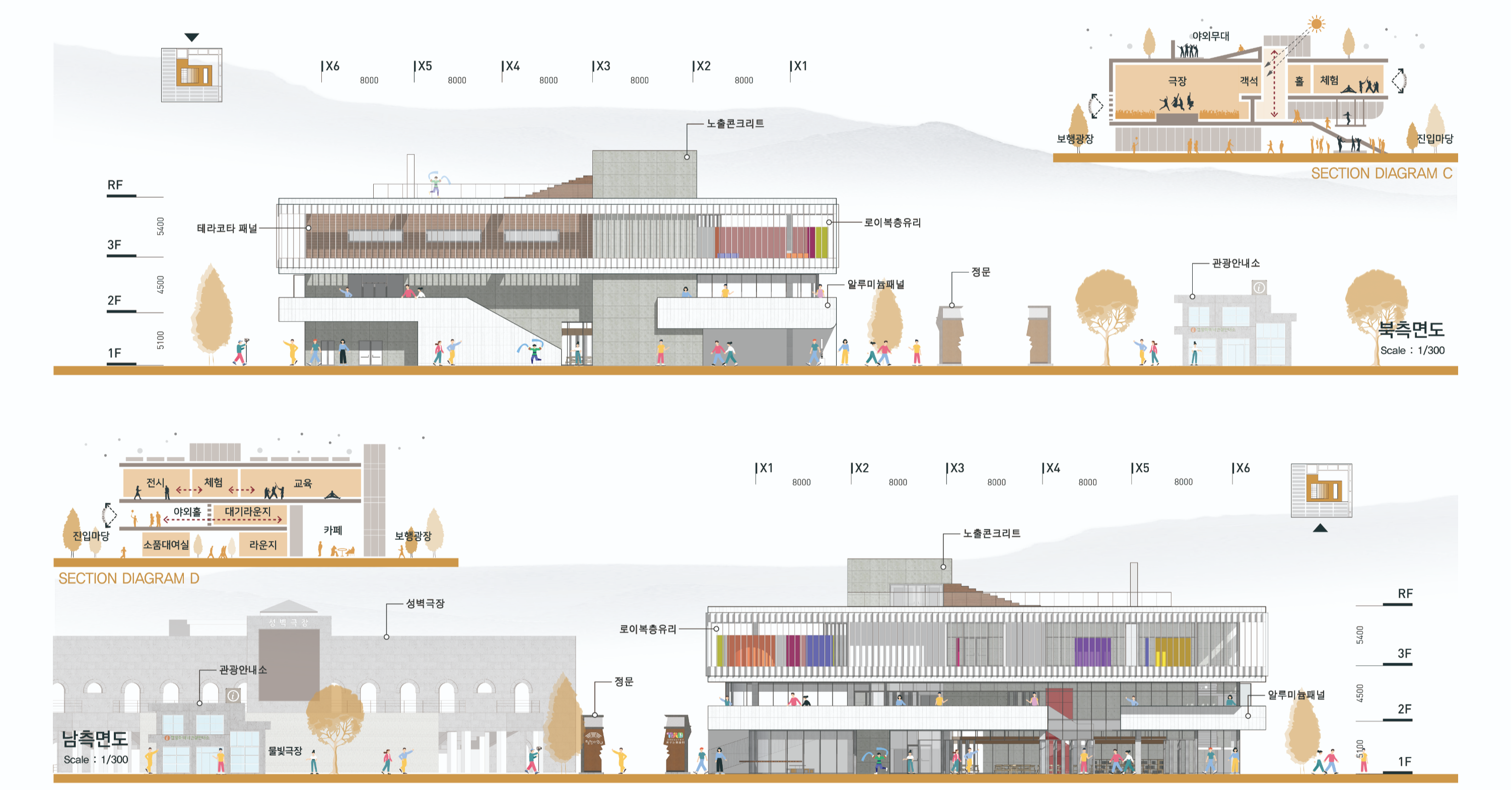 또, 극장을 중심으로 관련성이 높은 프로그램들을 층별로 연결시켜 이용자들과 관리자들의 편의성을 증진시켰고, 체험, 전시,교육의 문화프로그램들과 극장과의 유기적인 연계로 새로운 블랙박스형 극장을 제안한다. 또한 명확하게 조닝된 내/외부 프로그램들로 인해 시설 관리자들에게도 시설활용의 유연함을 제공한다.